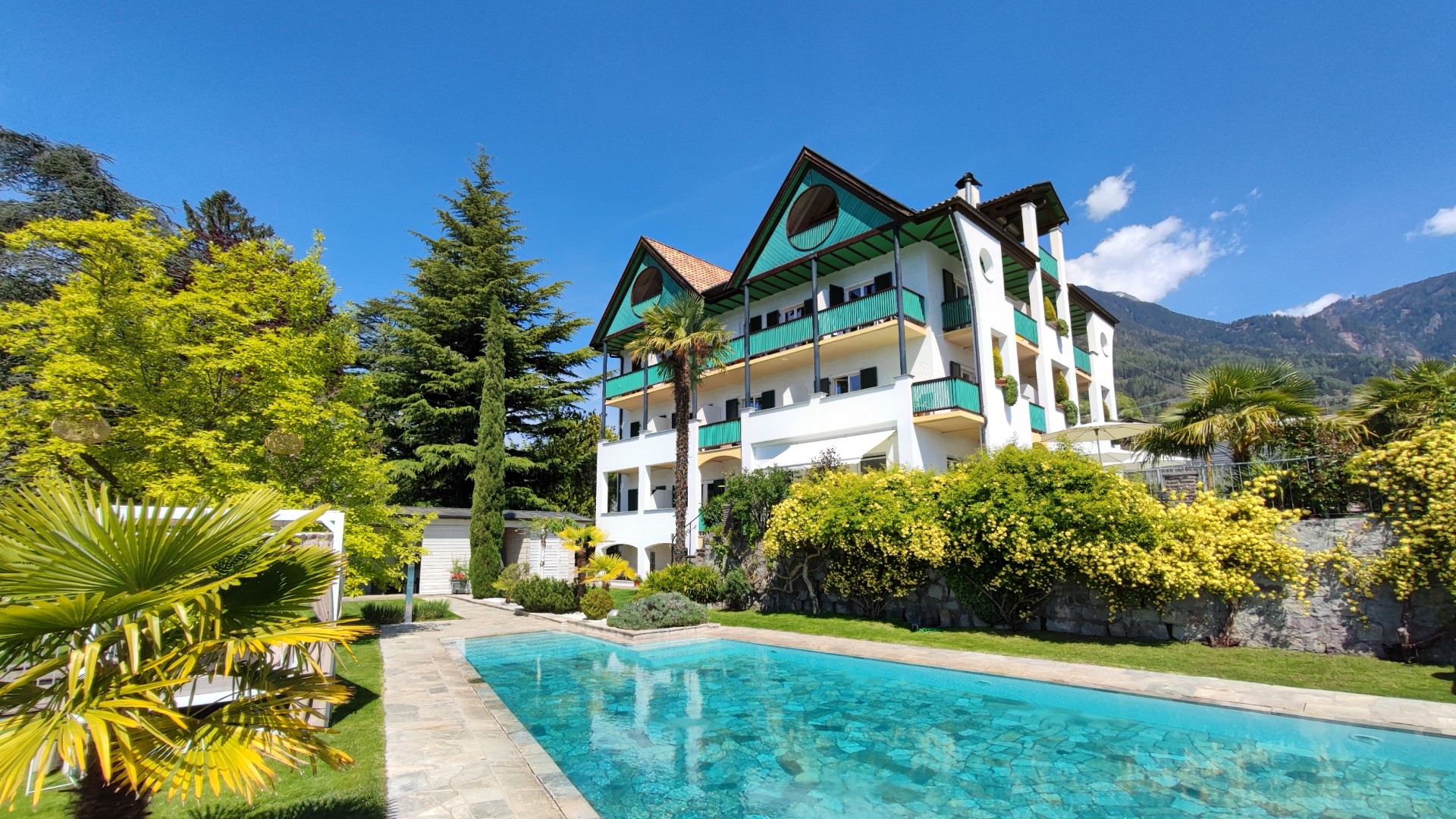 Ciascuna camera è decorata individualmente con grande attenzione di dettagli. Tutte le camere dispongono di un pavimento in legno e un balcone privato con vista su Merano e sulla piscina.